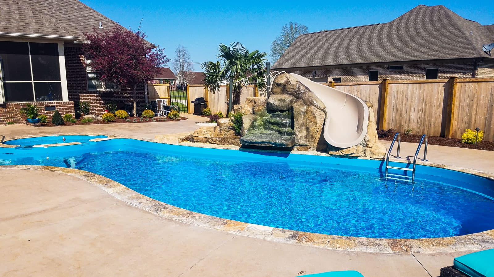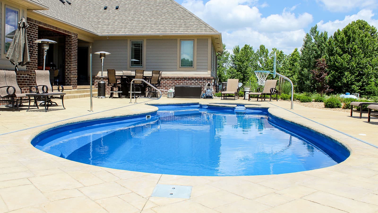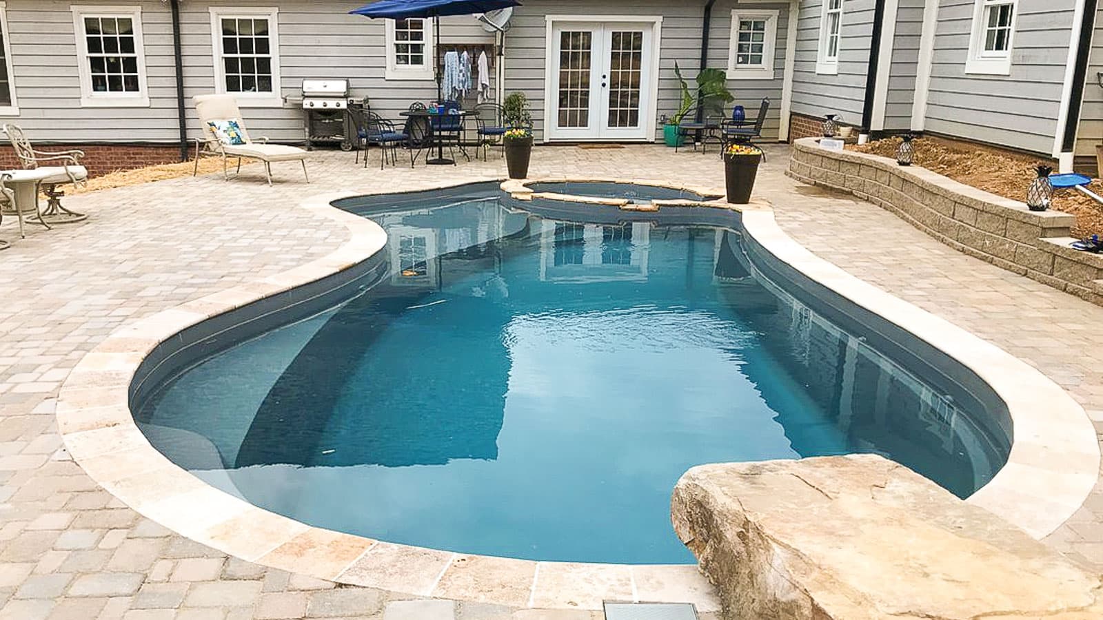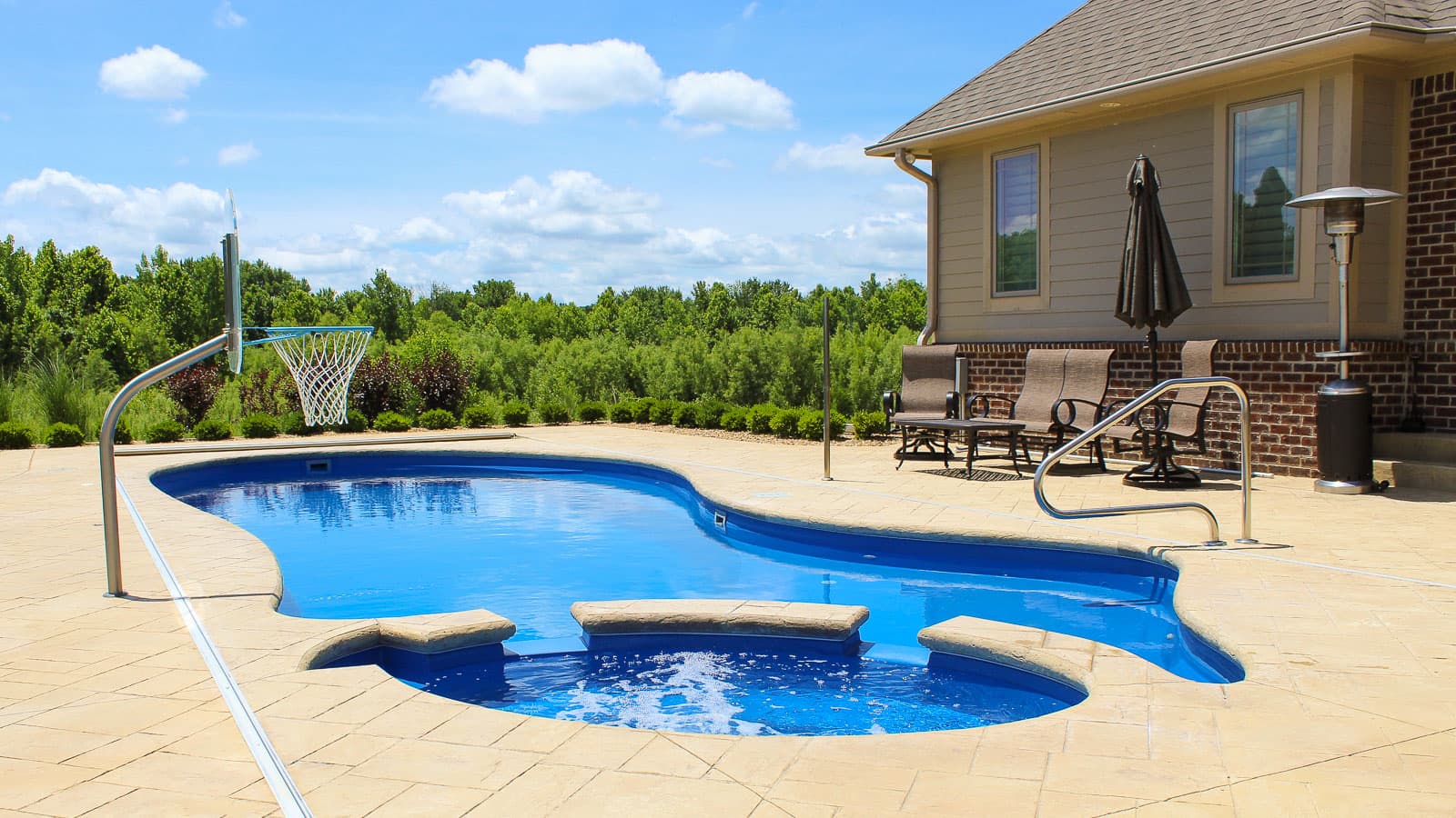 The Brilliant offers you the beauty of a freeform swimming pool plus the luxuries of a splash pad and a built-in spa. Available in three lengths, this is the “brilliant” way to keep everyone happy.