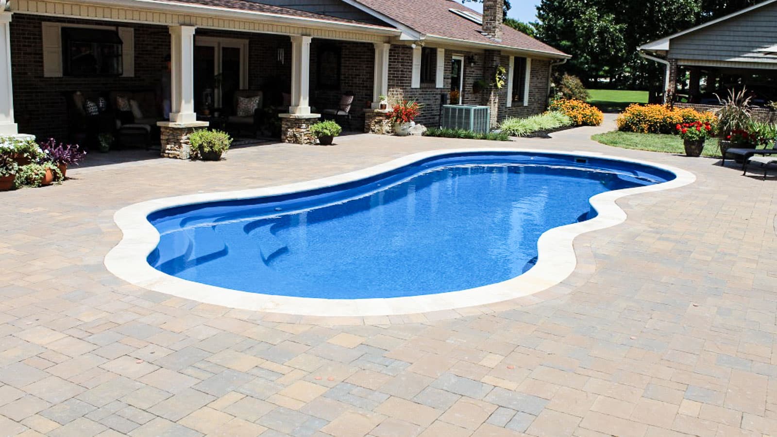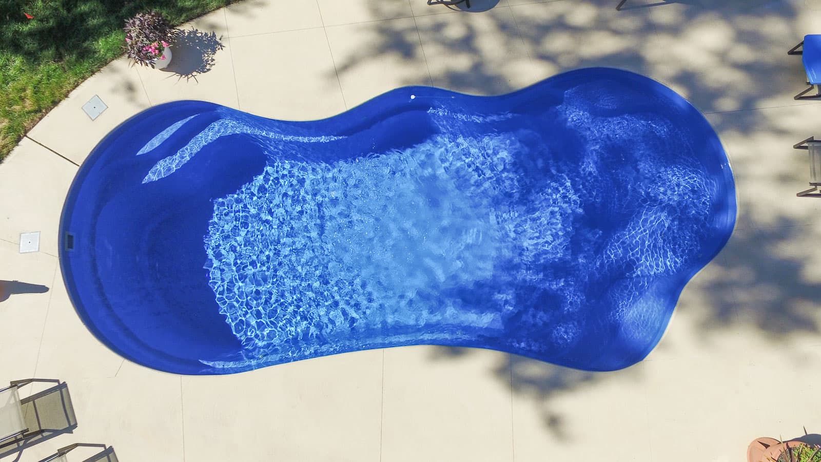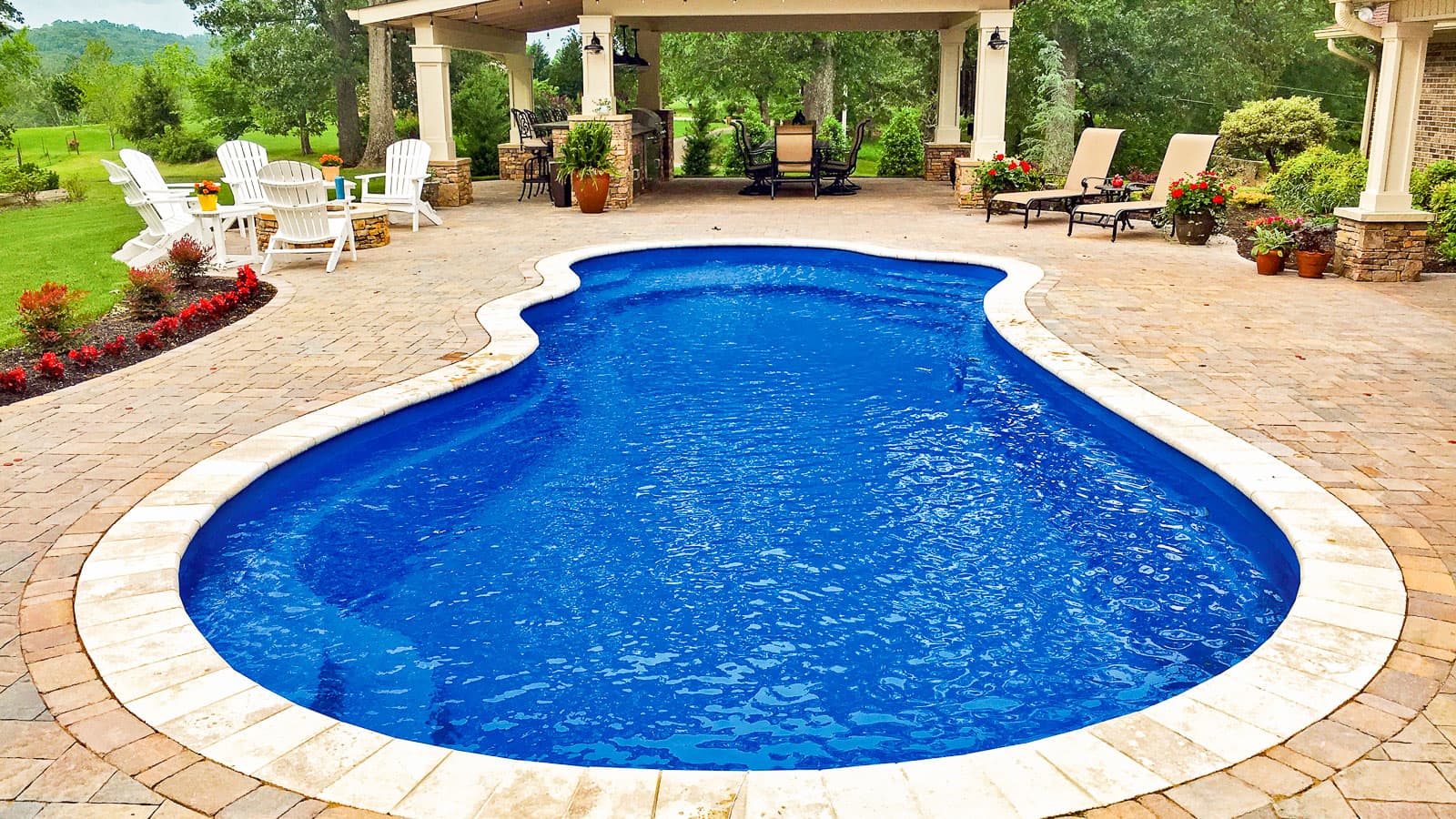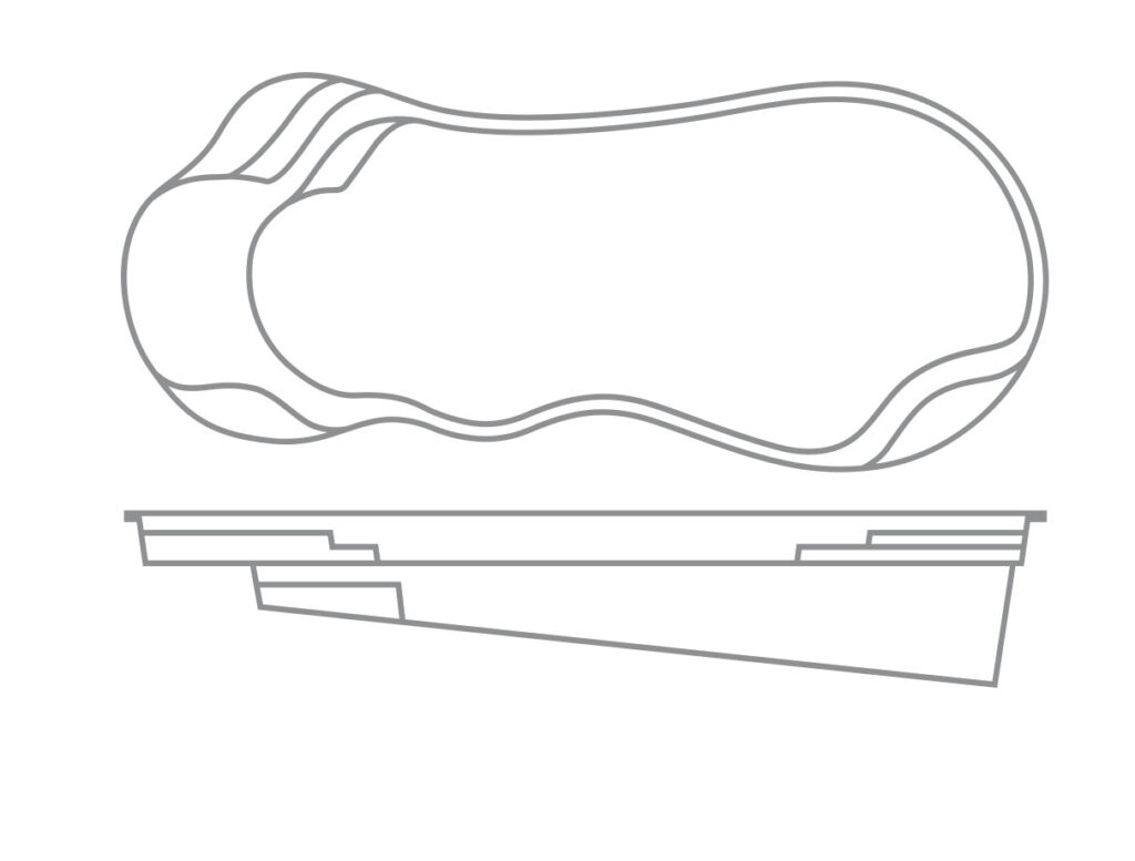 A freeform pool that offers an extraordinary wraparound entry area and bench at the front of the pool. Available in three lengths that allow you to coordinate creative landscape design with a range of swimming widths and depths.
