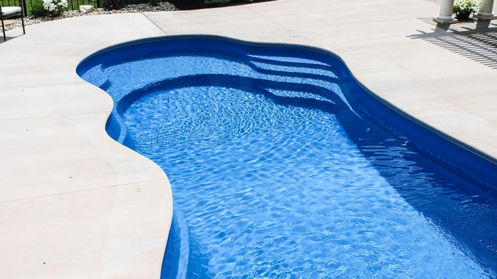 Convenient entry and exit steps are located at both the shallow and deep ends