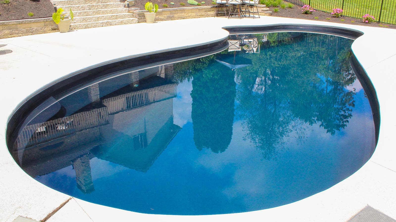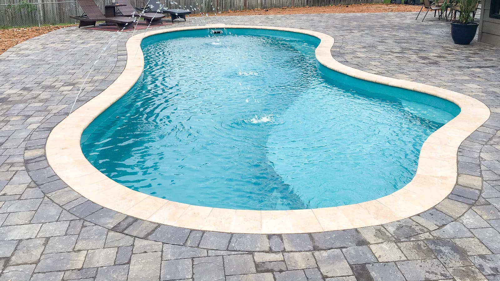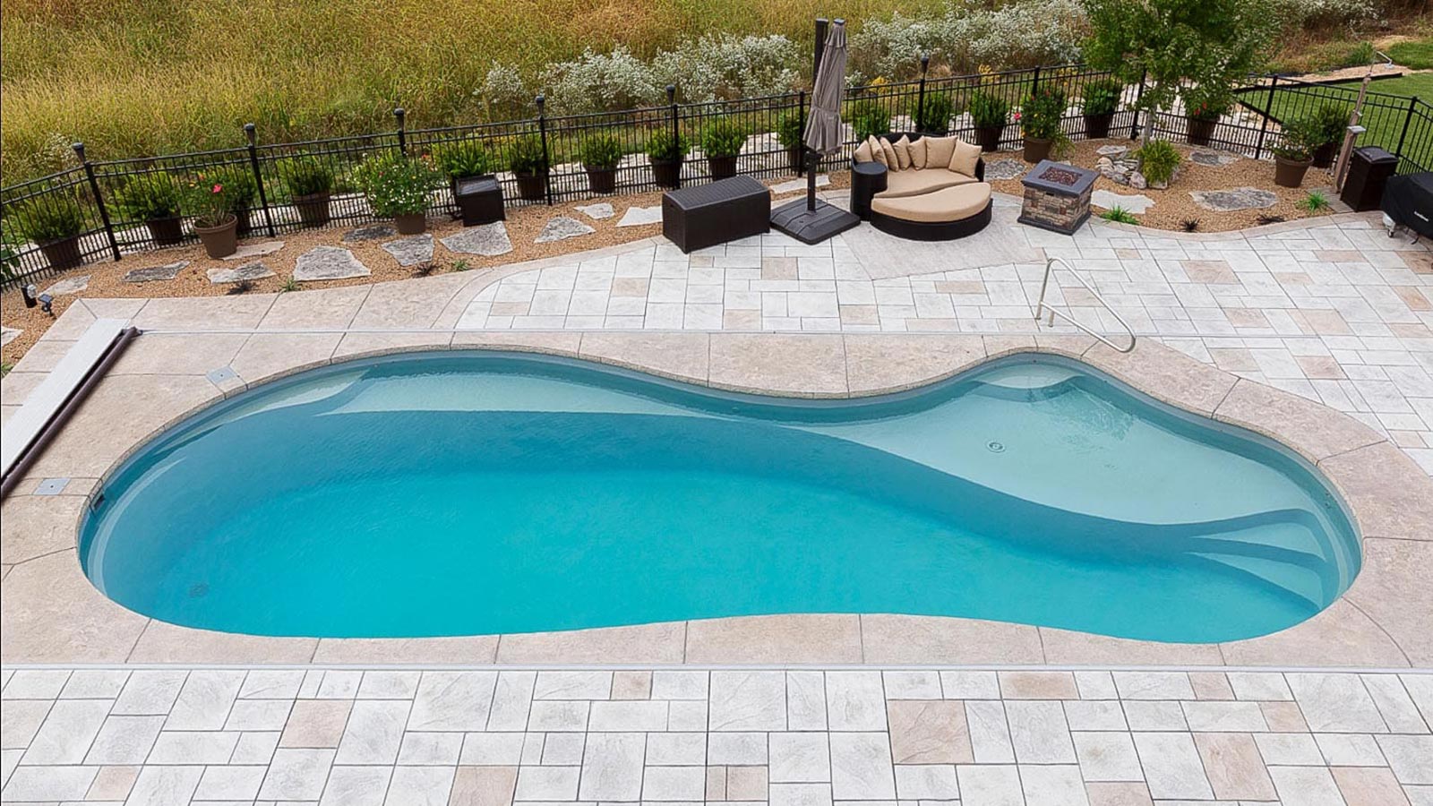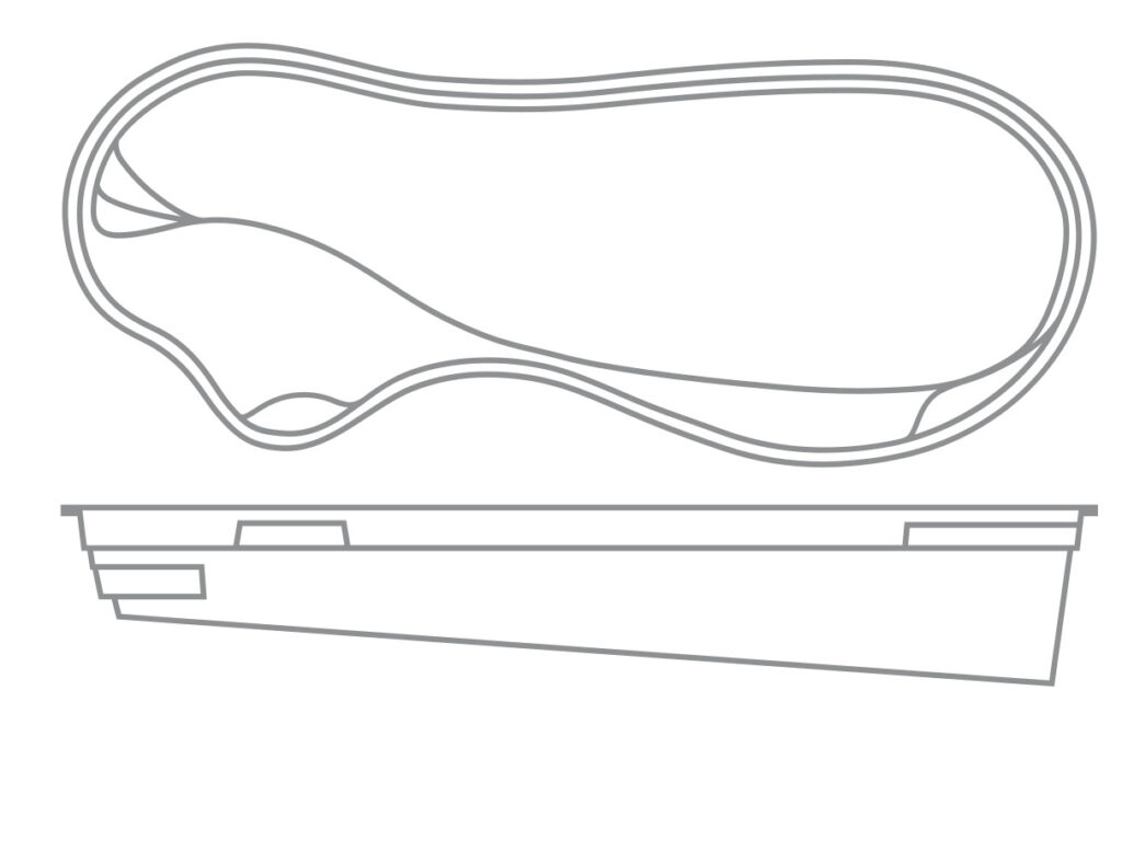 A popular freeform pool that is sleek and elegant in its design. The star feature is the delicious splash pad area near the front of the pool that still allows for a large swimming area beyond the entry steps. Available in five lengths for a truly versatile design.