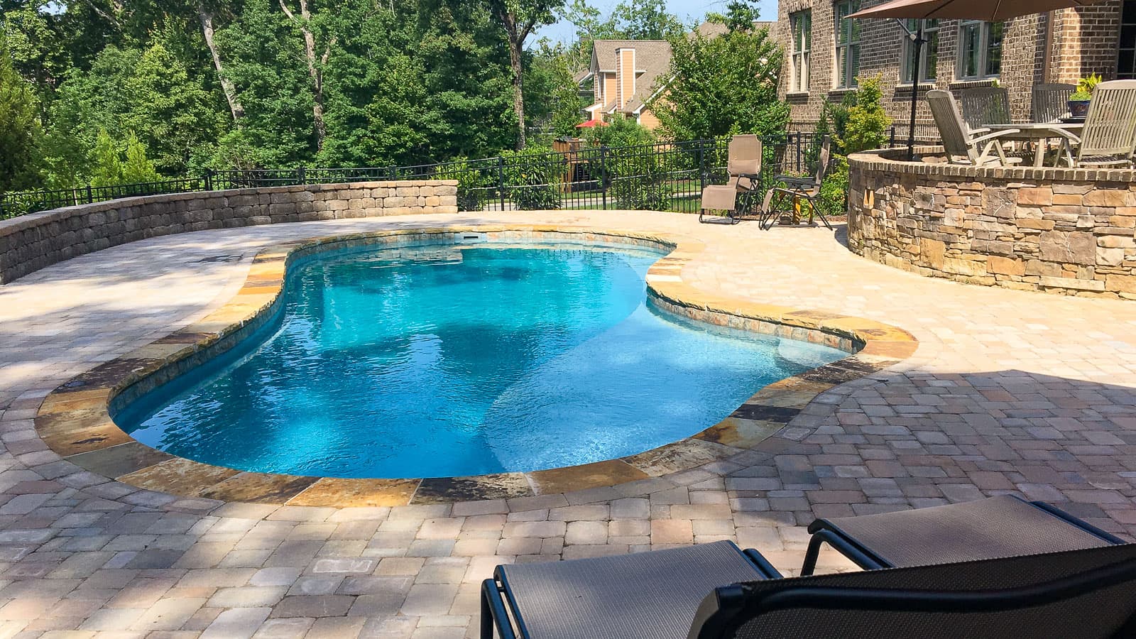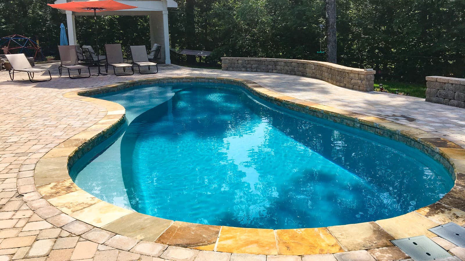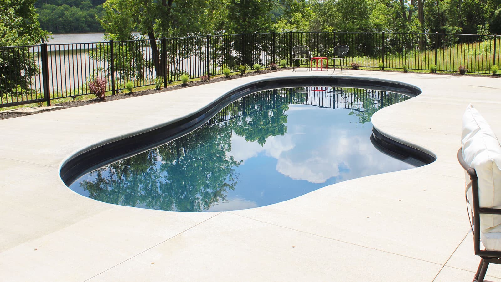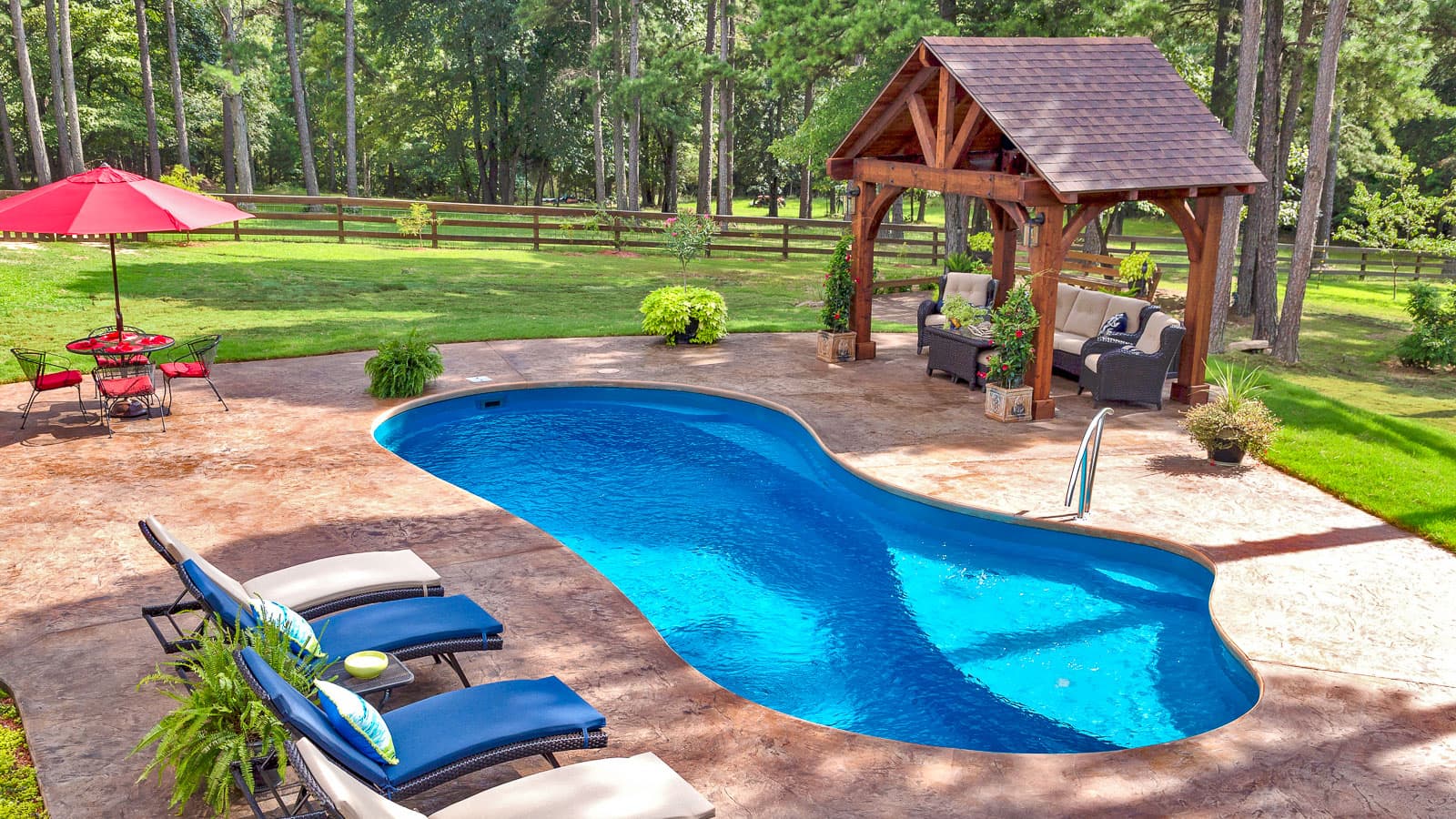 A popular freeform pool that is sleek and elegant in its design. The star feature is the delicious splash pad area near the front of the pool that still allows for a large swimming area beyond the entry steps. Available in five lengths for a truly versatile design.